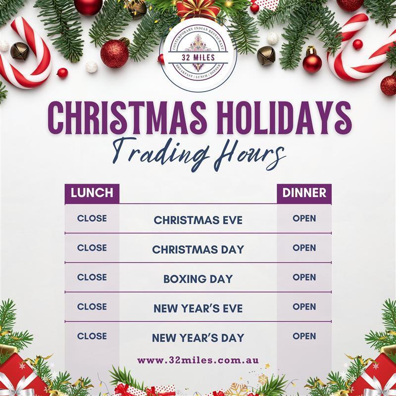 At 32 Miles, Christmas Day lunch and dinner with friends and family hold a special meaning for all of us—a time to come together, celebrate the season, and create lasting memories over authentic flavors and warm hospitality.